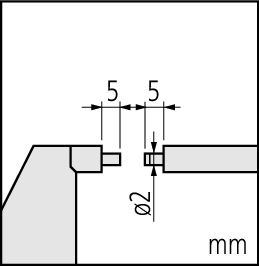 - Anvil and spindle are of small diameter for measuring splined shafts, slots and keyways.