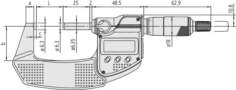 This IP65 micrometer offers outstanding accuracy, without data output, is highly robust and offers the following benefits: