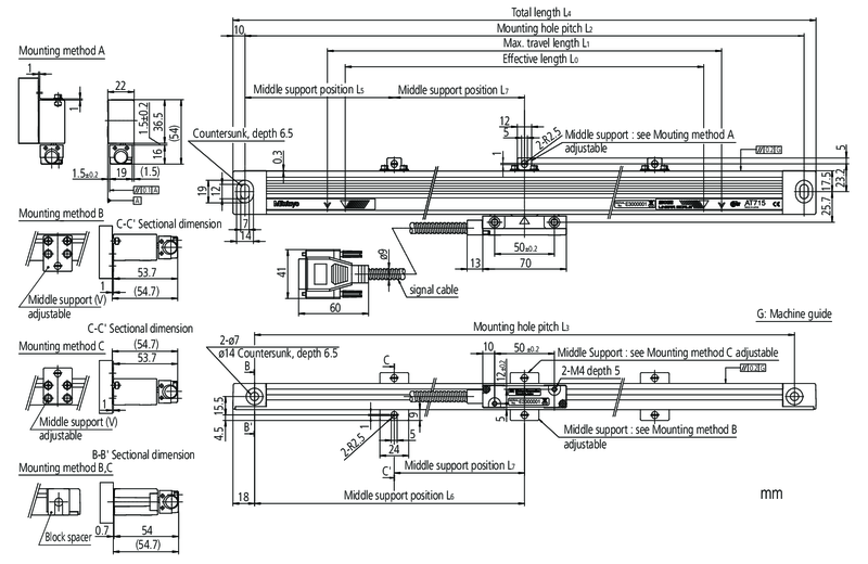 Accuracy: | 100 to 500 mm ±5 µm 600 to 1800 mm ±7 µm 2000 to 3000 mm ±10 µm |